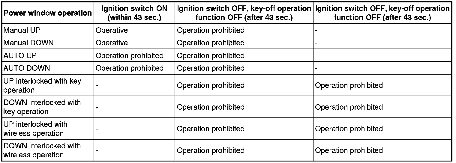 (a) When an abnormality is detected in the limit switch and pulse sensor for operating the jam protection function (DTC: B1231, B1232, B1233, B1234), the following power window operations will be prohibited as a fail-safe.