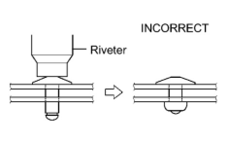 - Do not pry the rivet with the riveter, as this will cause damage to the riveter and mandrel.