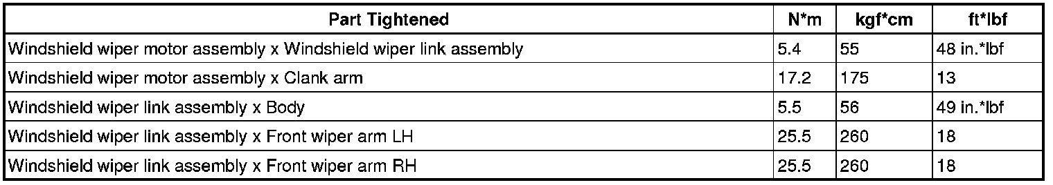 SERVICE SPECIFICATIONS: WIPER AND WASHER: TORQUE SPECIFICATIONS