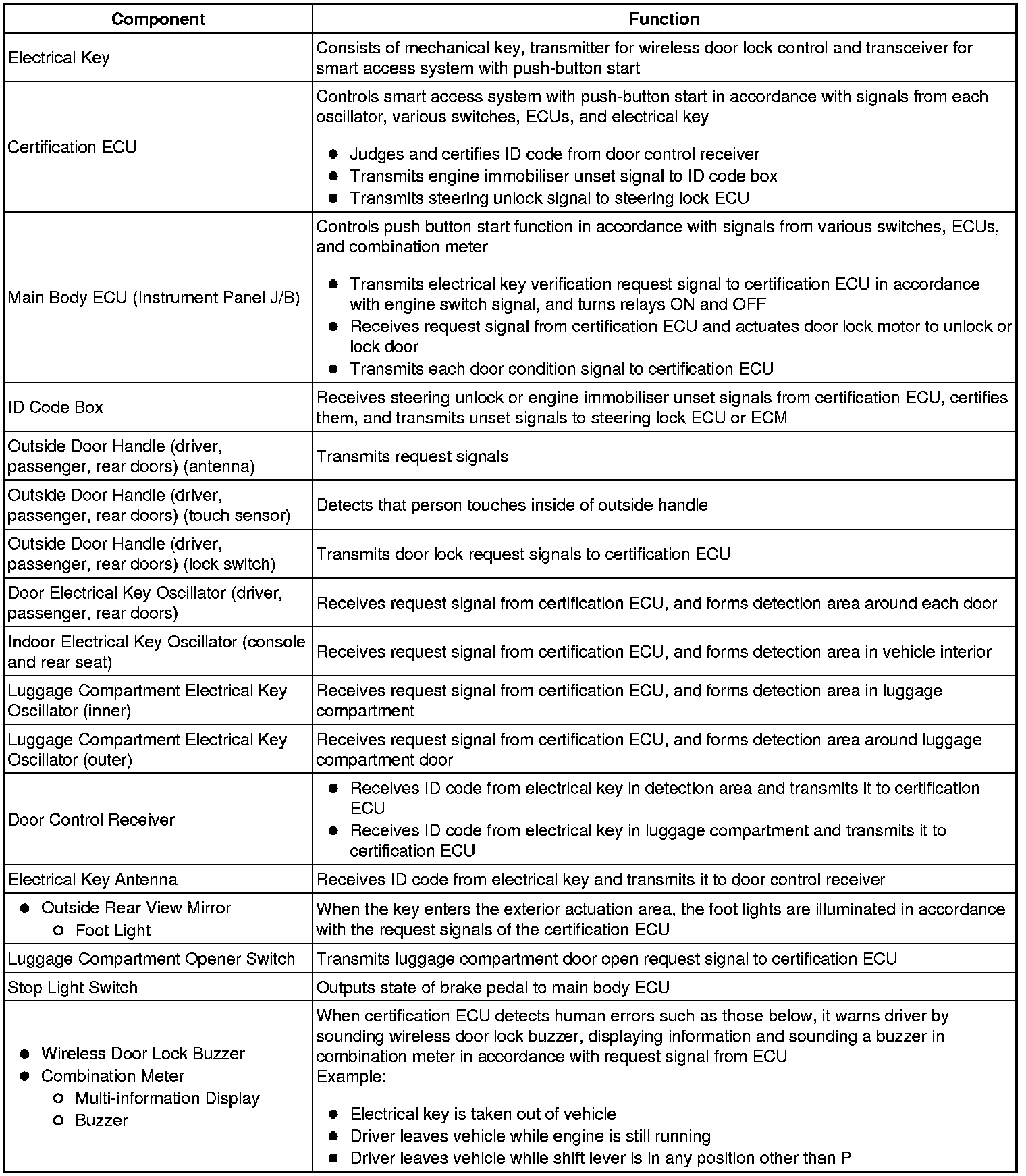 (a) The smart access system with push-button start has the following functions: