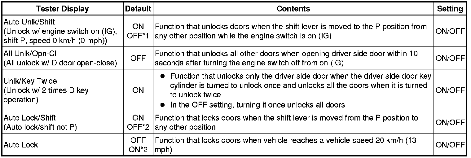 DOOR LOCK: POWER DOOR LOCK CONTROL SYSTEM: CUSTOMIZE PARAMETERS