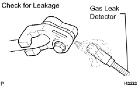 (c) Using a gas leak detector, check for leakage from the refrigerant lines.