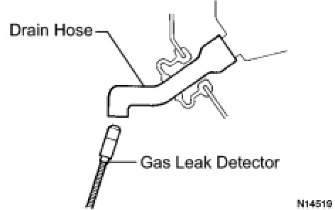 (d) Bring the gas leak detector close to the drain hose with the detector's power off, and then turn the detector on.