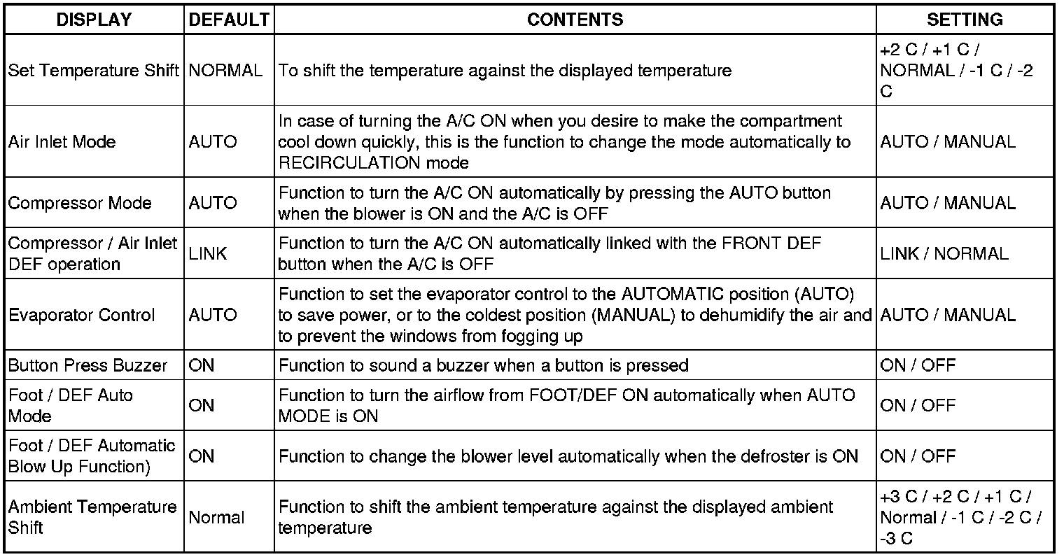 AIR CONDITIONING: AIR CONDITIONING SYSTEM: CUSTOMIZE PARAMETERS