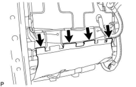 (b) Disengage the 2 claws and separate the front seat cushion shield assembly.
