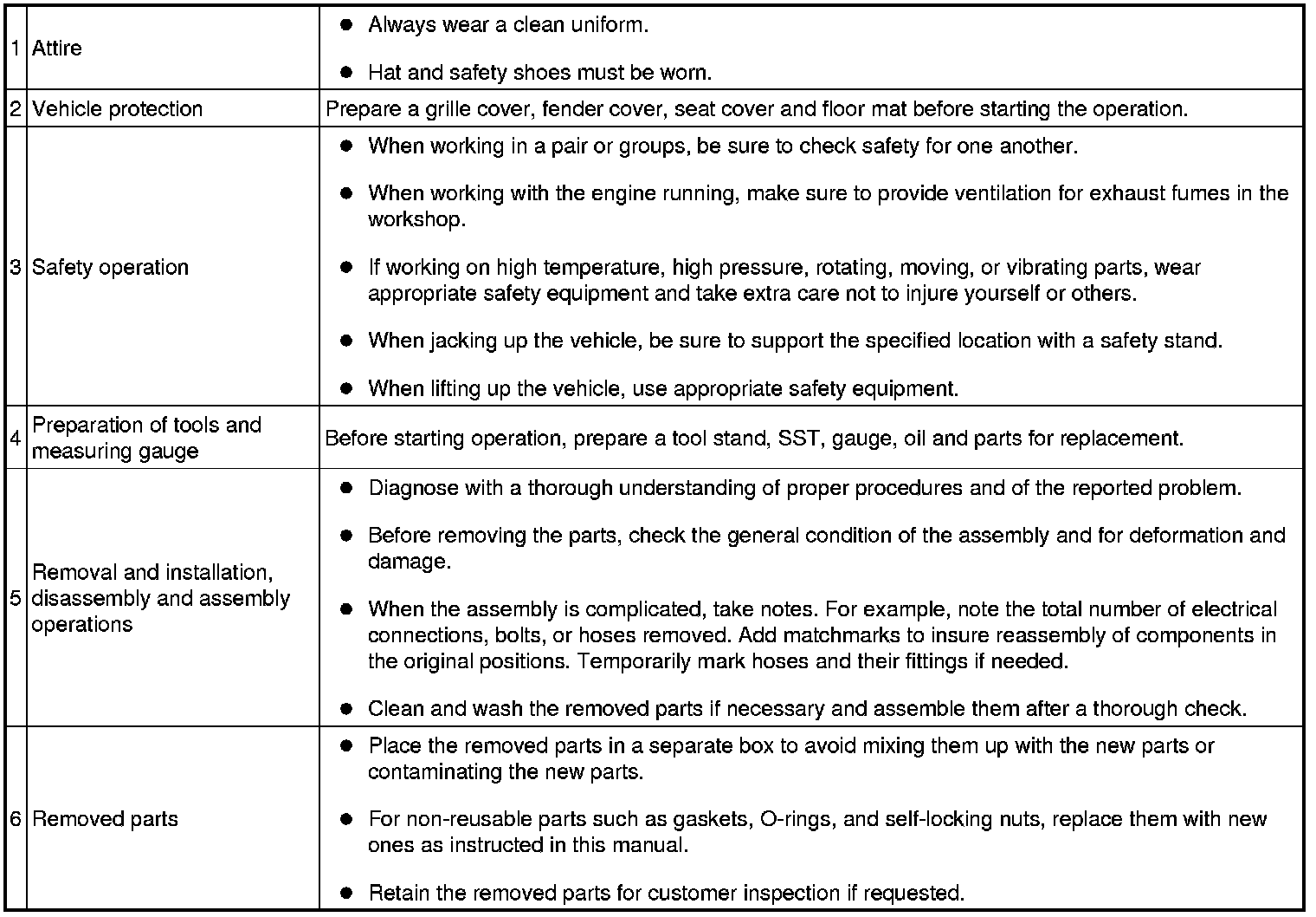 * Failure to carry out the service operations in the correct sequence could cause the SRS to unexpectedly deploy during servicing and lead to serious injury. Furthermore, if a mistake is made when servicing SRS, it is possible that the SRS may fail to operate properly. Before servicing (including removal or installation of parts, inspection or replacement), be sure to read the following section carefully.