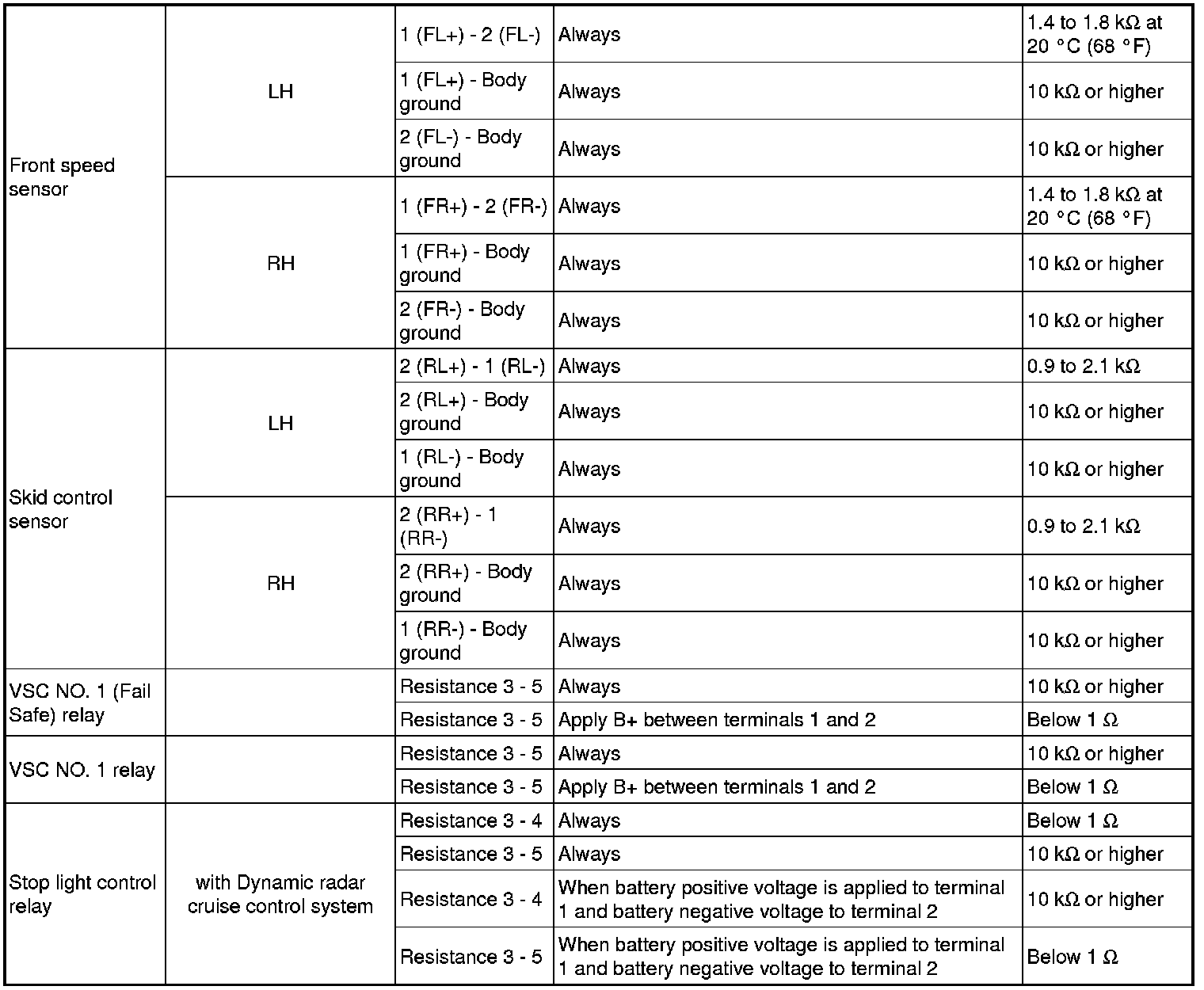 SERVICE SPECIFICATIONS: BRAKE CONTROL: SERVICE DATA