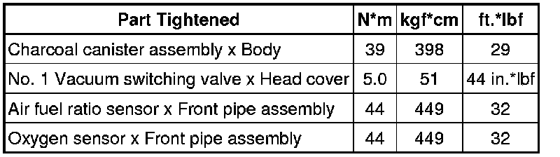 SERVICE SPECIFICATIONS: 2GR-FE EMISSION CONTROL: TORQUE SPECIFICATIONS