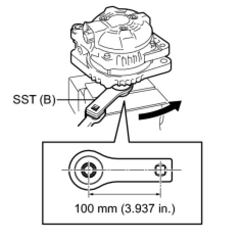 (f) Tighten the pulley by turning SST (B) in the direction shown in the illustration.
