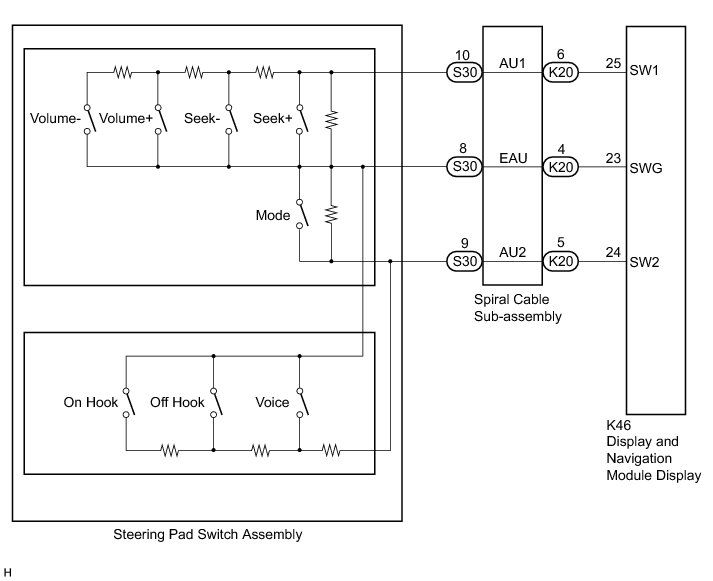 If there is an open in the circuit, the navigation system cannot be operated using the steering pad switch assembly.