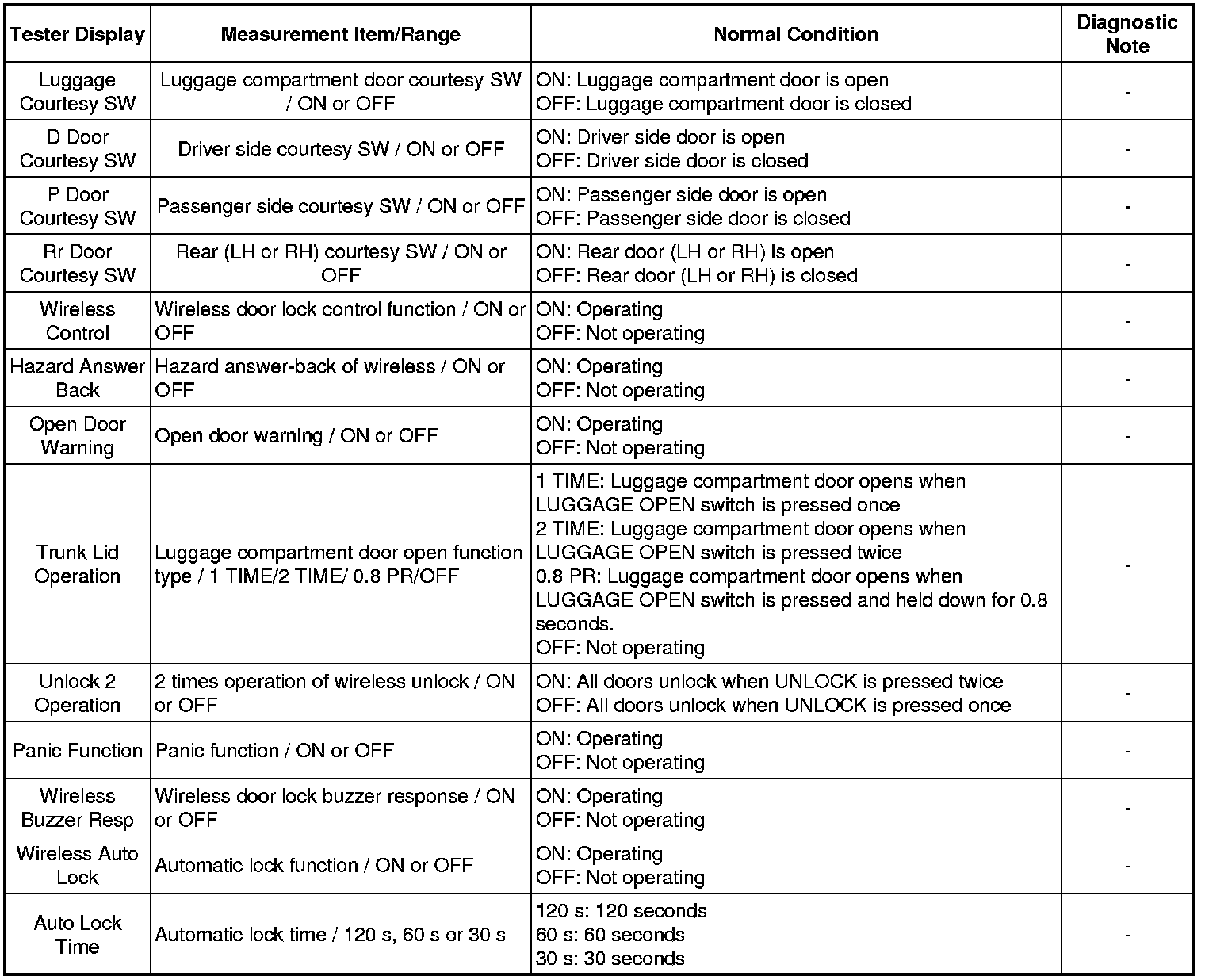 DOOR LOCK: WIRELESS DOOR LOCK CONTROL SYSTEM: DATA LIST / ACTIVE TEST