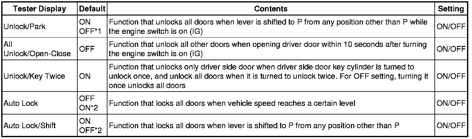 DOOR LOCK: POWER DOOR LOCK CONTROL SYSTEM: CUSTOMIZE PARAMETERS