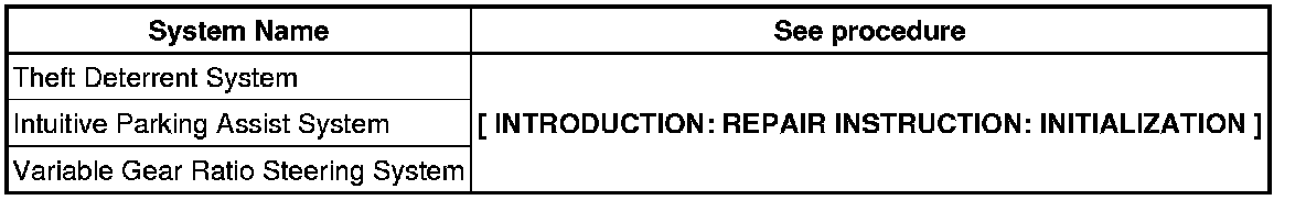 When disconnecting the cable from the negative (-) battery terminal, initialize the following systems after the cable is reconnected.