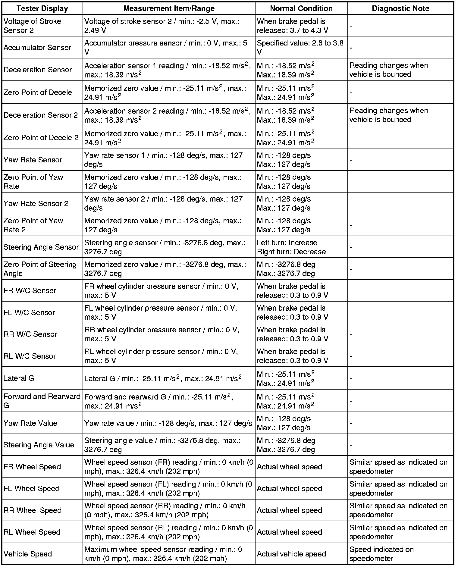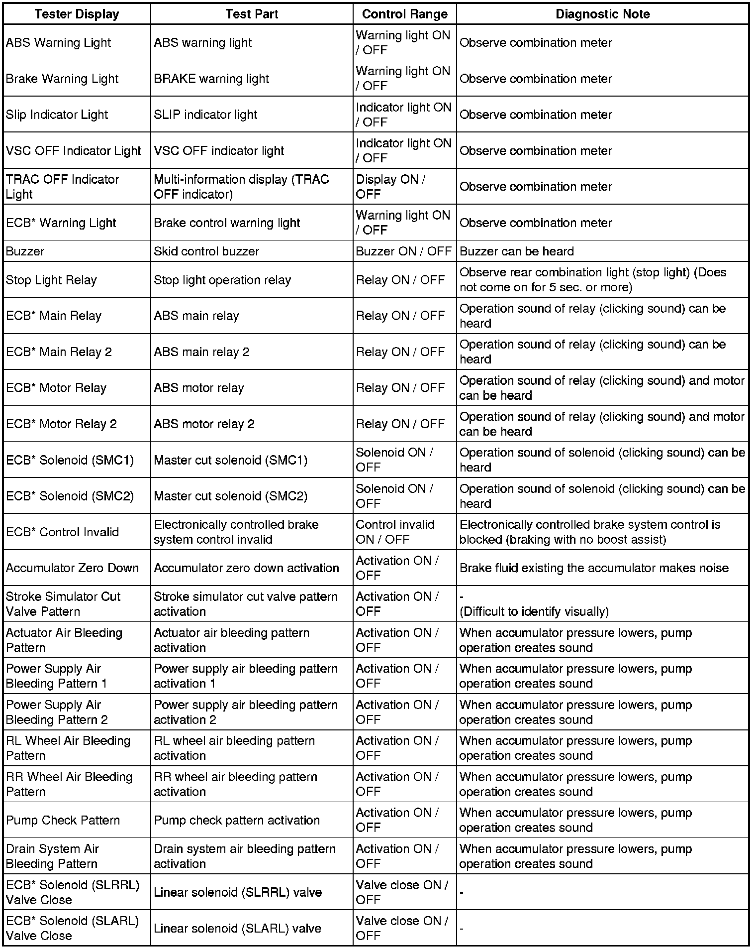 BRAKE CONTROL: ELECTRONICALLY CONTROLLED BRAKE SYSTEM: DATA LIST / ACTIVE TEST
