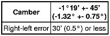 (b) If the measured value is not within the specified range, inspect the suspension parts for damage and wear. Replace parts as necessary because camber cannot be properly adjusted with any damaged or worn parts.