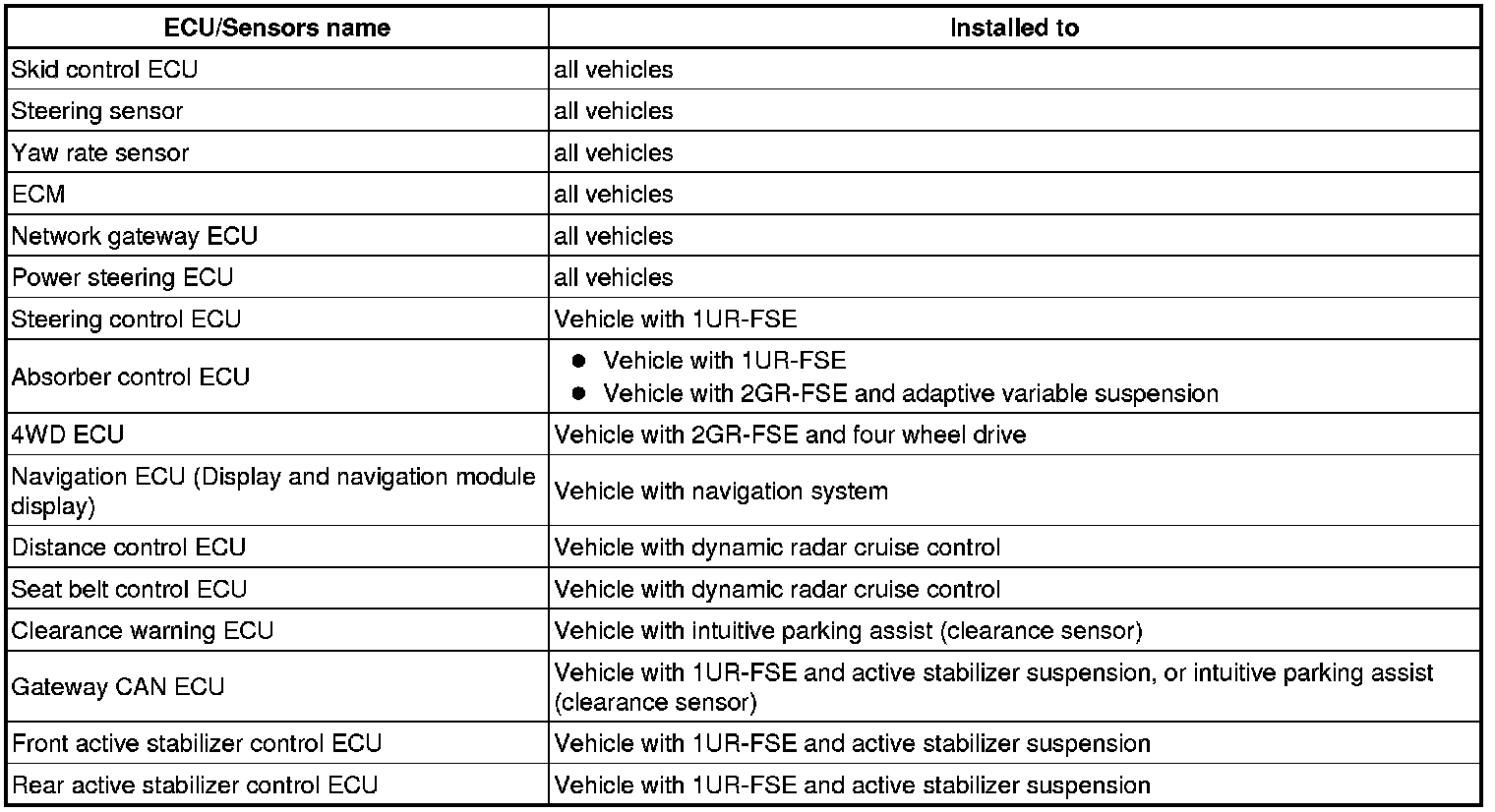 (a) Systems (ECUs, sensors) that use CAN communication vary depending on the vehicle optional equipment. Check which systems (ECUs, sensors) are installed on the vehicle.
