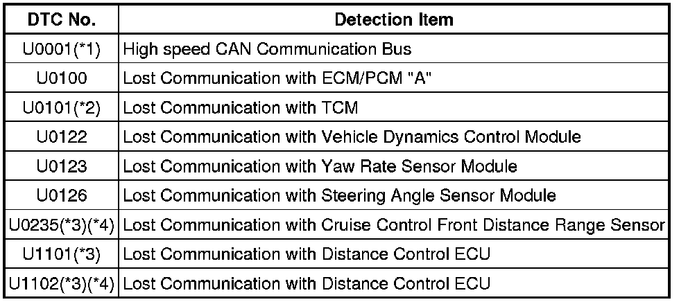 * *4: Displayed on the "communication malfunction DTCs" screen of the Techstream. If U0235 or U1102 is output alone, the CAN communication is normal U0235 for U0235, U1102 for U1102).