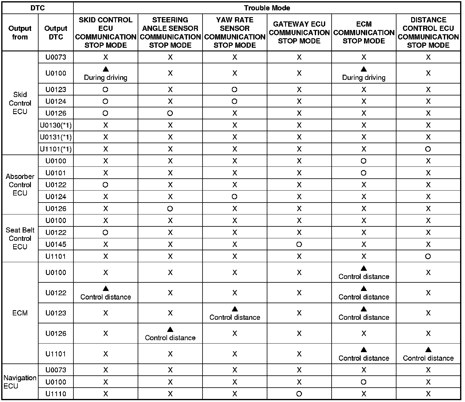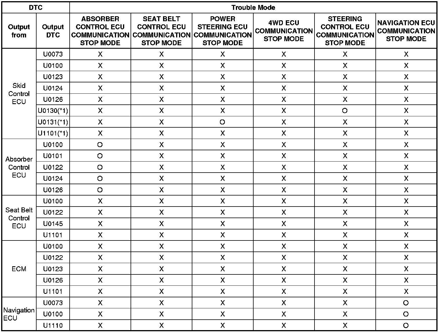 * *1: The ECM is malfunctioning if U0001 is output alone. Replace the ECM.