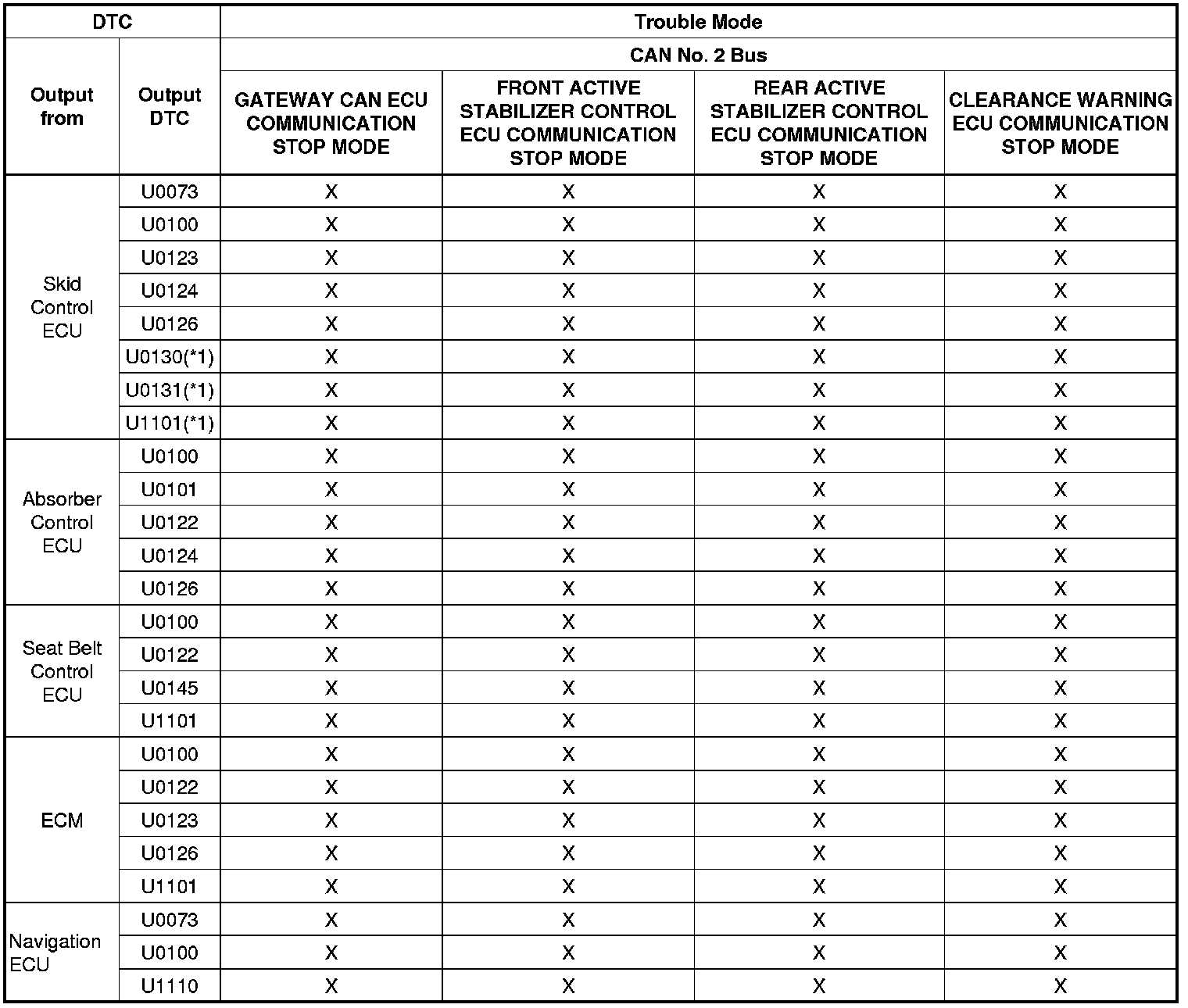 *: When CAN No. 2 communication error other than ECM error, a DTC is stored