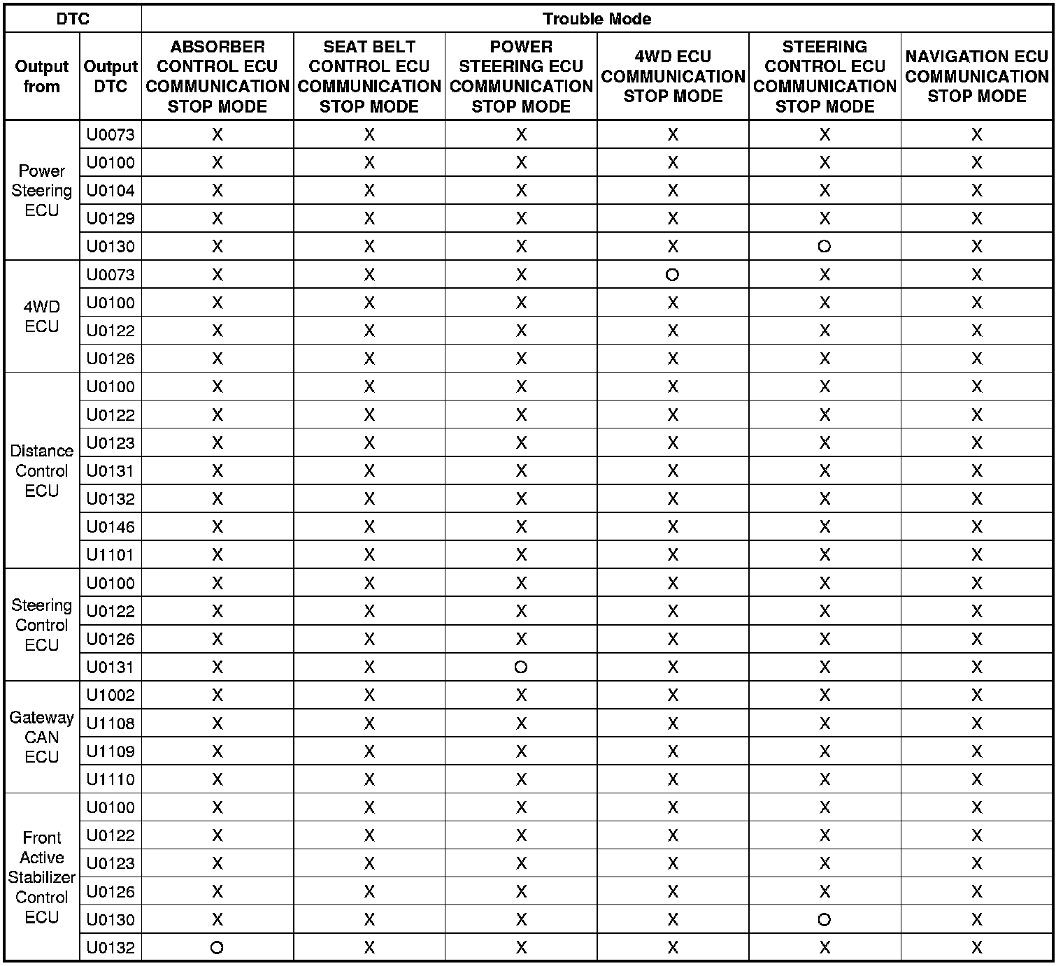 3. DTC TABLE BY ECU