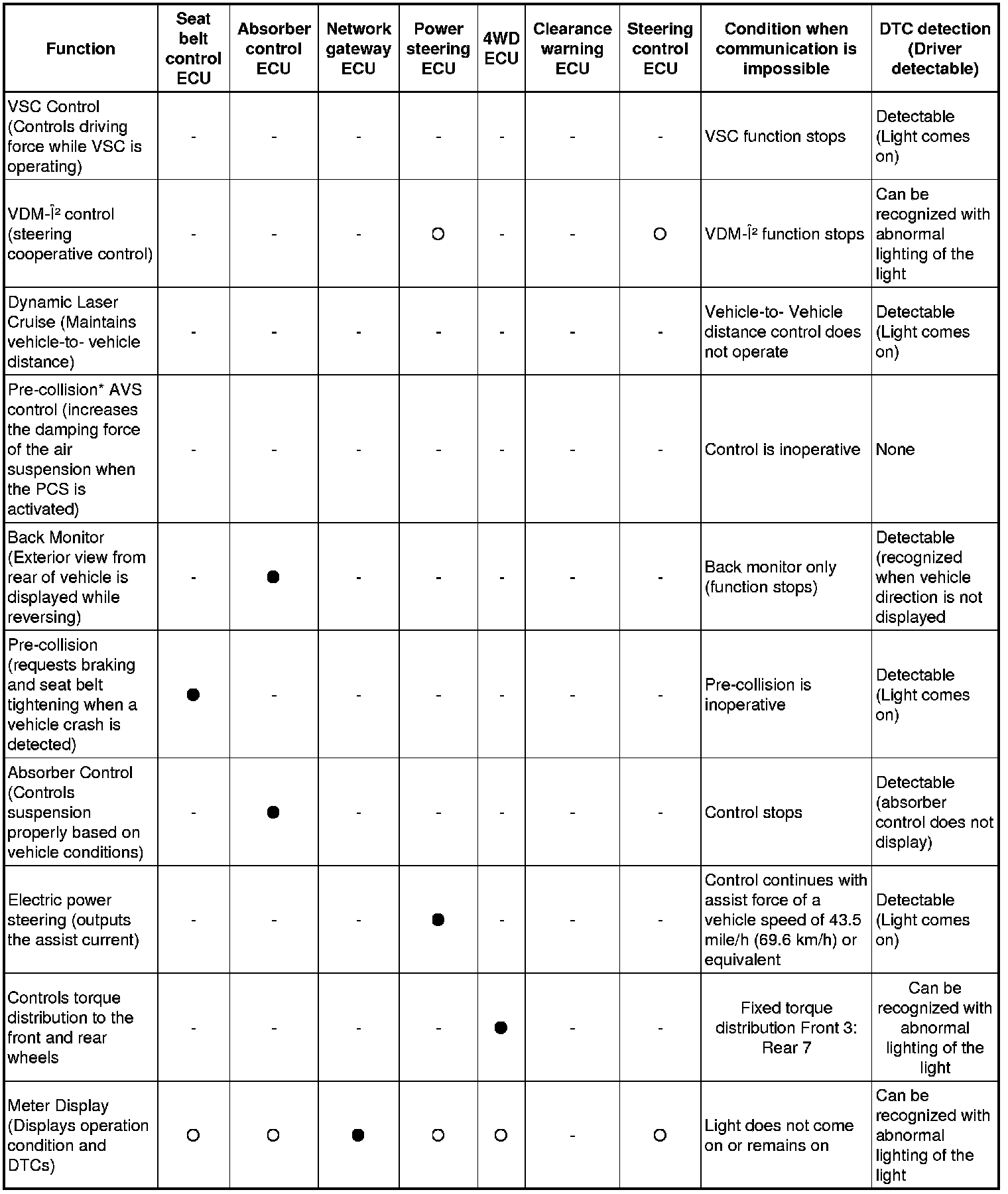 (b) Effects on each system when communication is impossible. (For further details, see the pages for each system.)