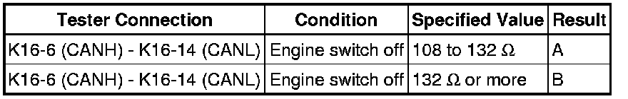 When the measured value is 132 Ohms or more and a CAN communication system diagnostic trouble code is output, there may be a fault besides disconnection of the DLC3 sub bus line. For that reason, troubleshooting should be performed again from "HOW TO PROCEED WITH TROUBLESHOOTING" How to Proceed With Troubleshooting after repairing the trouble area.