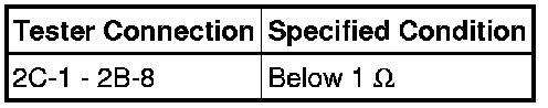 (2) Connect the battery's positive (+) lead to terminal 2A-8 and negative (-) lead to terminal 2B-3. Measure the resistance between terminals 2B-7 and 2C-1 when battery voltage is applied between the terminals.