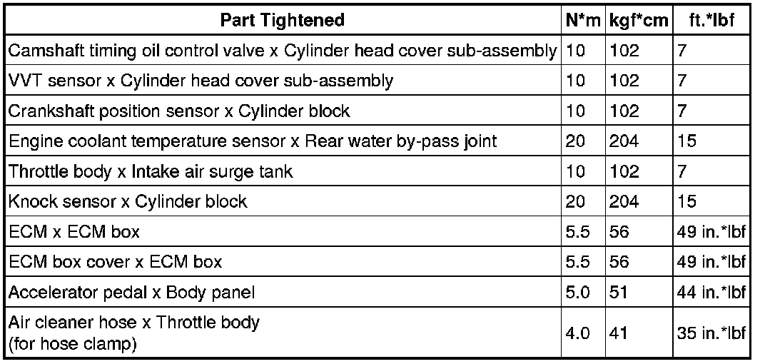 SERVICE SPECIFICATIONS: 2GR-FSE ENGINE CONTROL SYSTEM: TORQUE SPECIFICATIONS