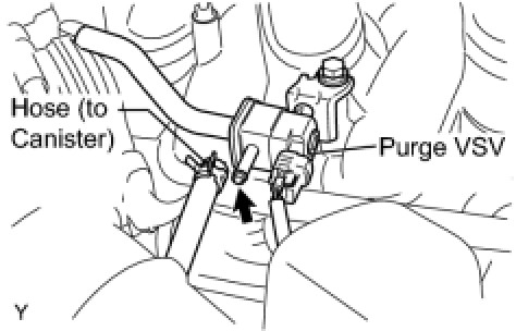 (b) Disconnect the hose (connected to the canister) from the purge VSV.