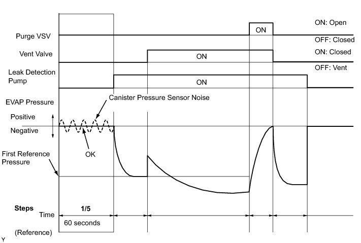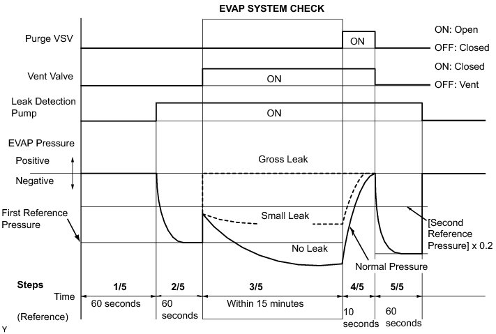 (b) Compare the EVAP pressure in step 3/5 and the second reference pressure (step 5/5).