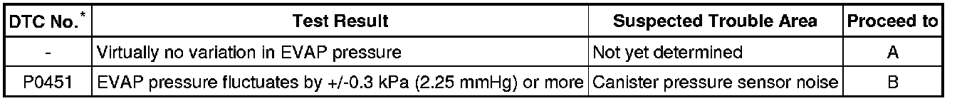 If any EVAP system DTCs are set, the malfunctioning area can be determined using the table below.