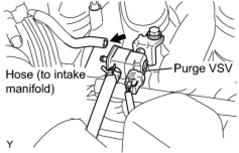 (a) Disconnect the hose (connected to the intake air surge tank) from the purge VSV.