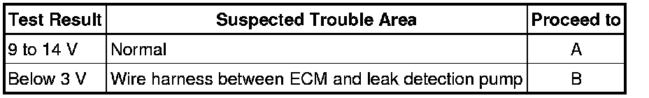 Measure the voltage between terminal MPMP of the ECM connector and the body ground when the leak detection pump is turned ON and OFF using the Techstream.