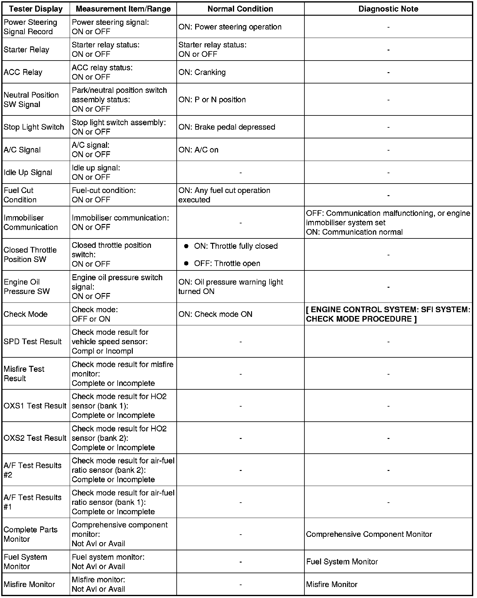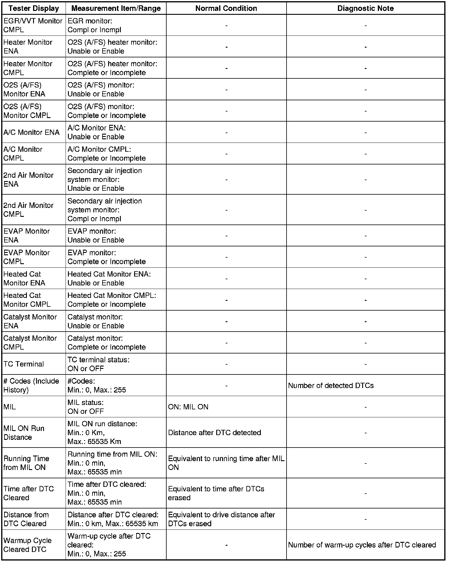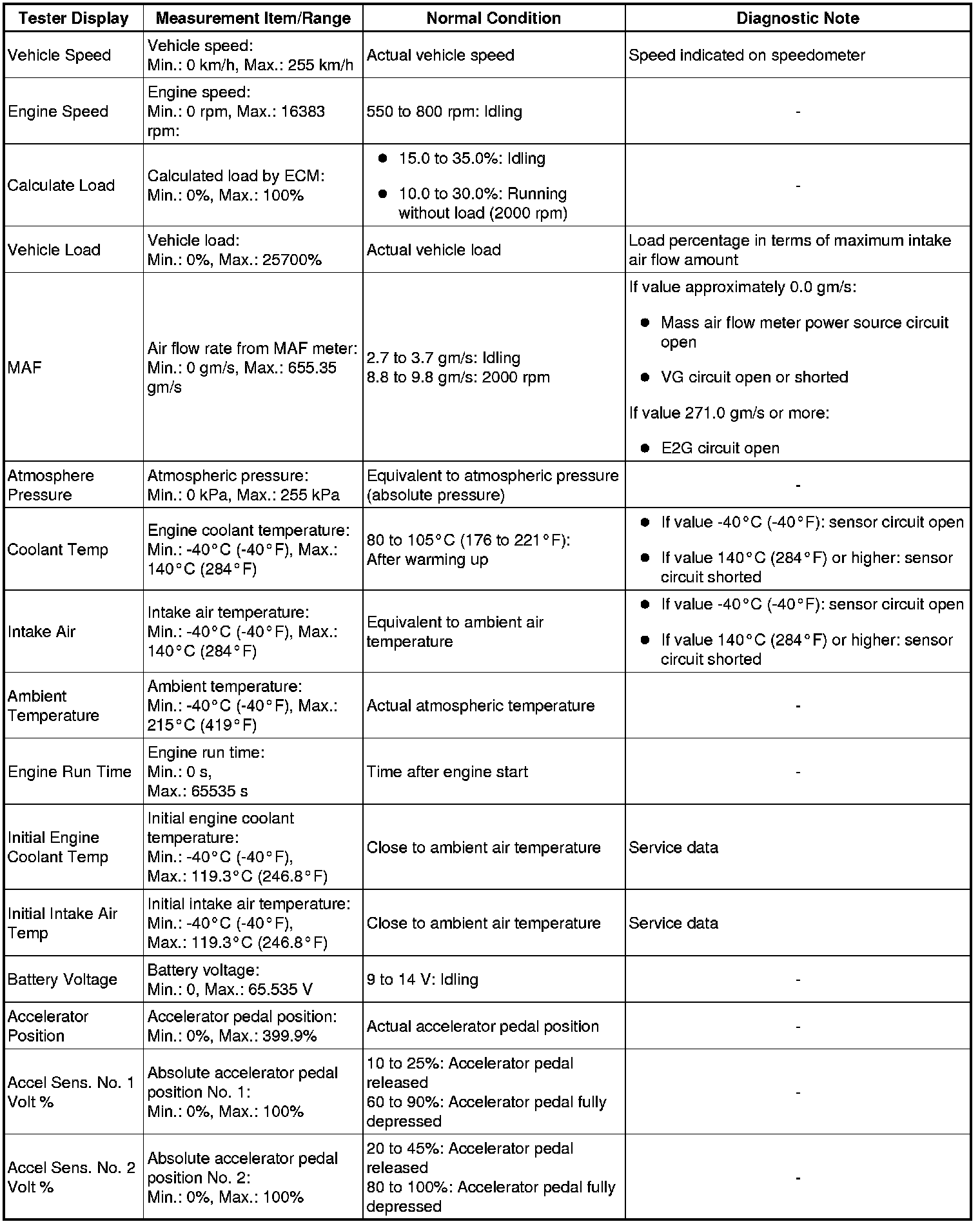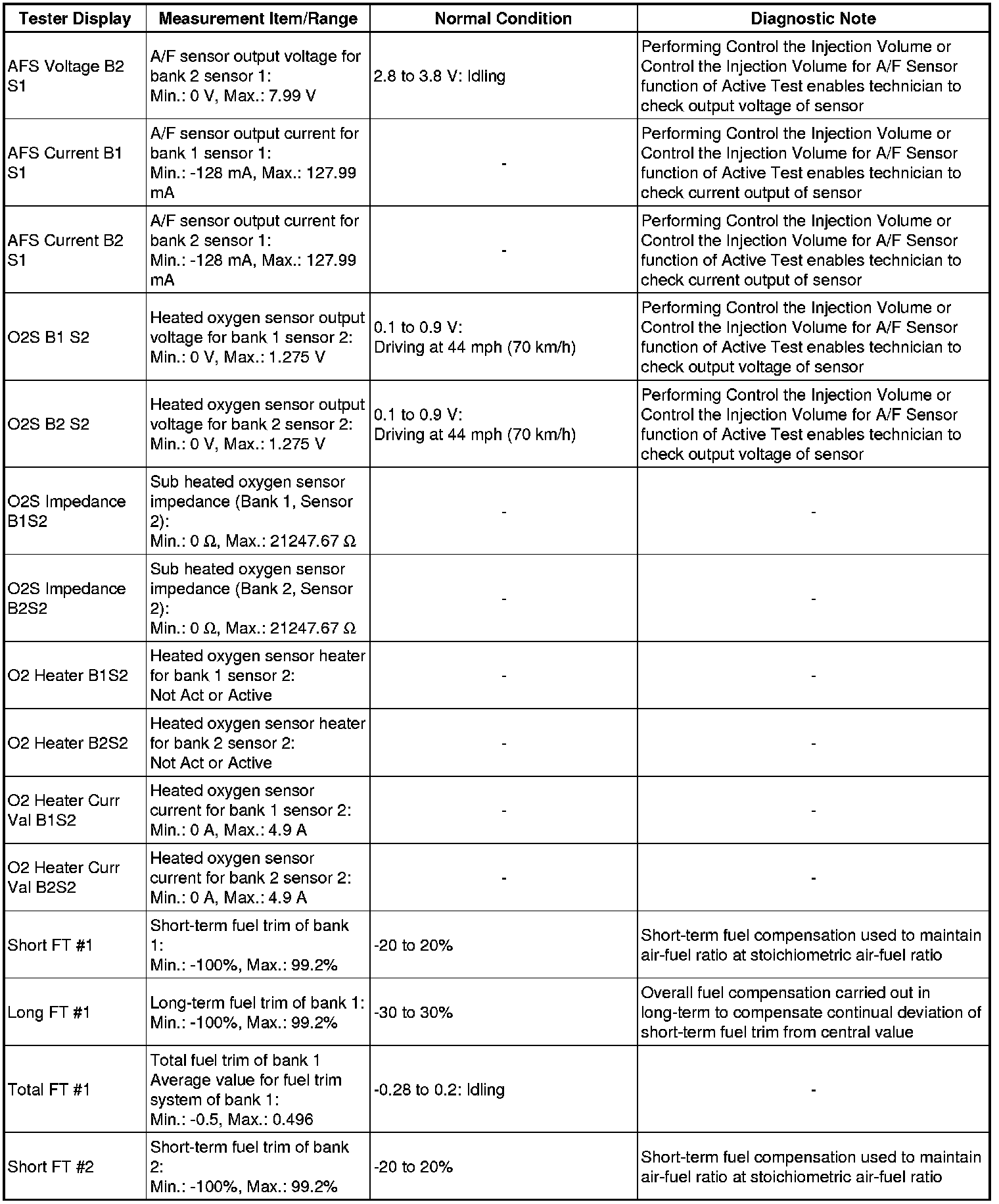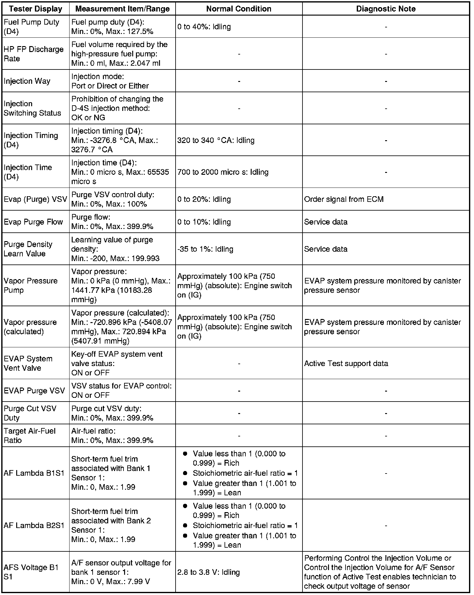 By reading the Data List displayed on the Techstream, you can check values, including those of the switches, sensors and actuators, without removing any parts. Reading the Data List as the first step of troubleshooting is one method of shortening diagnostic time.