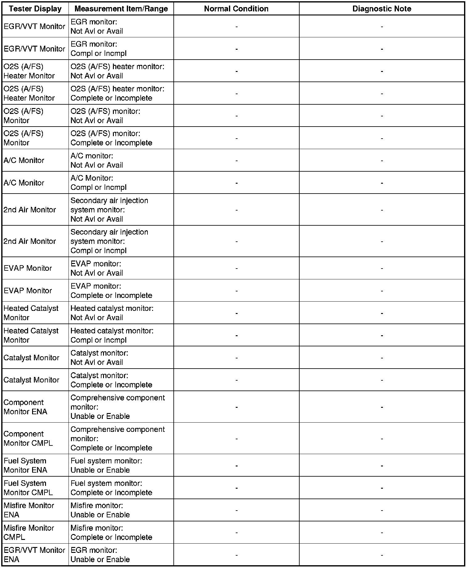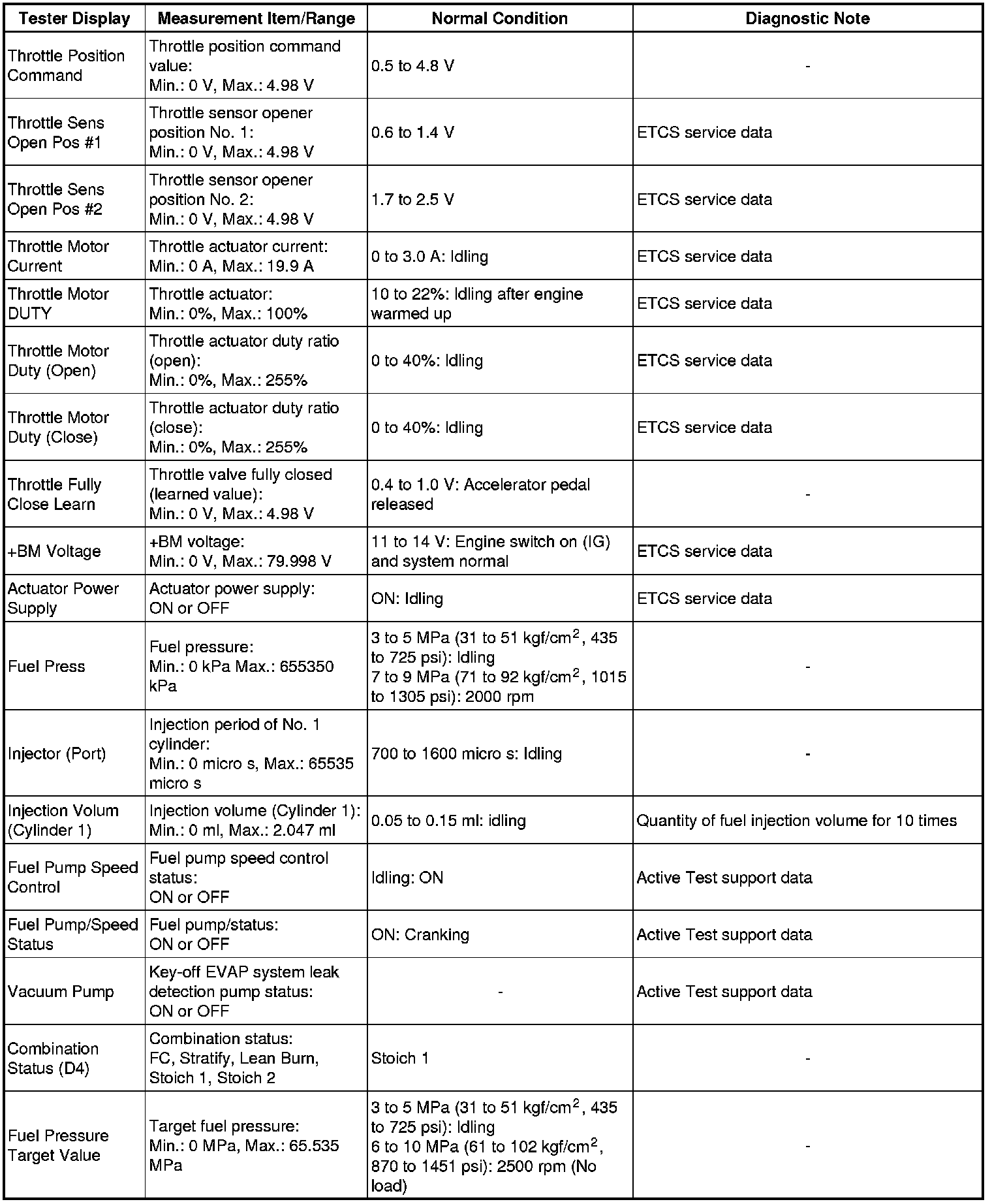 In the table below, the values listed under Normal Condition are reference only. Do not depend solely on these values when determining whether or not a part is faulty.