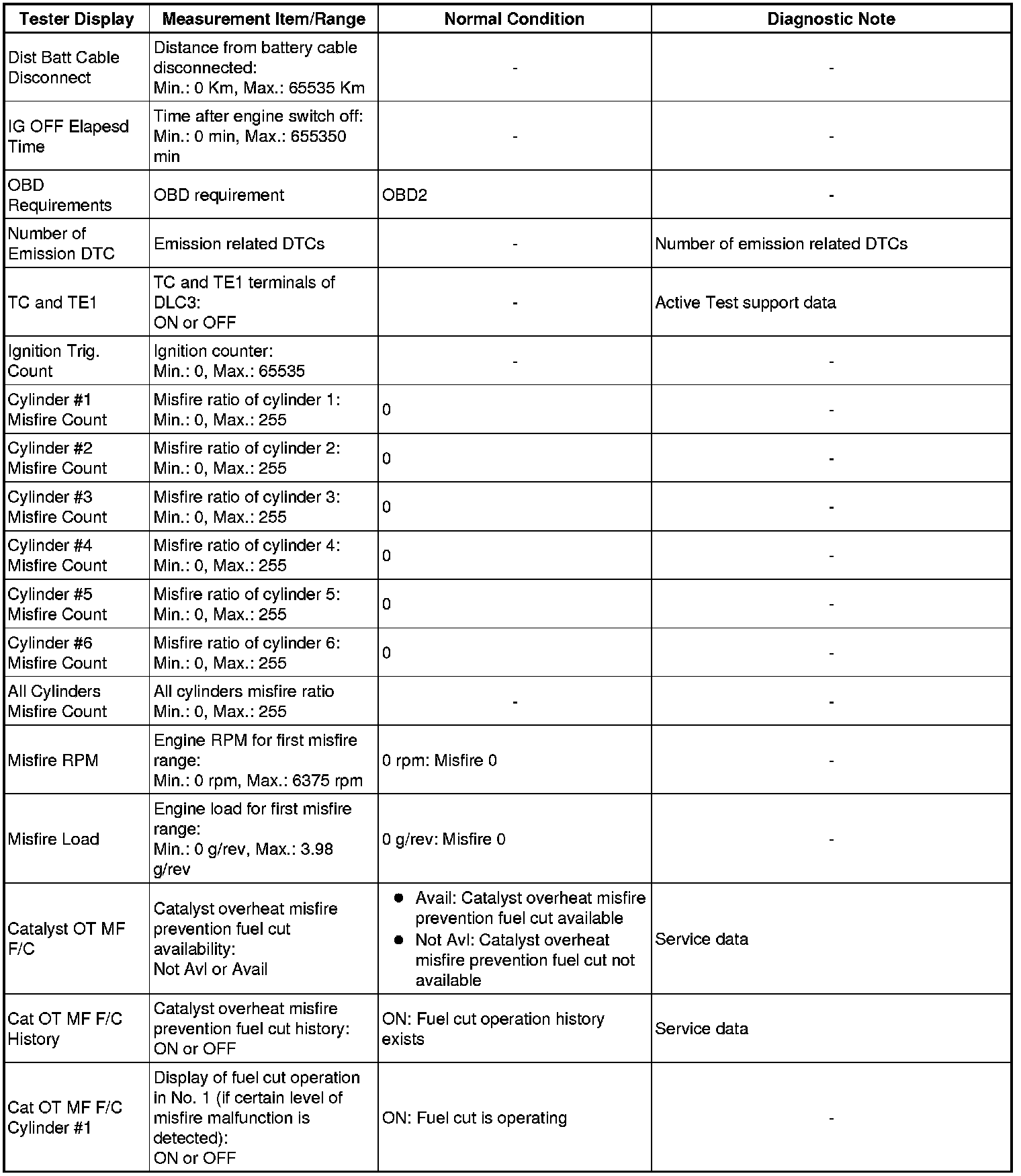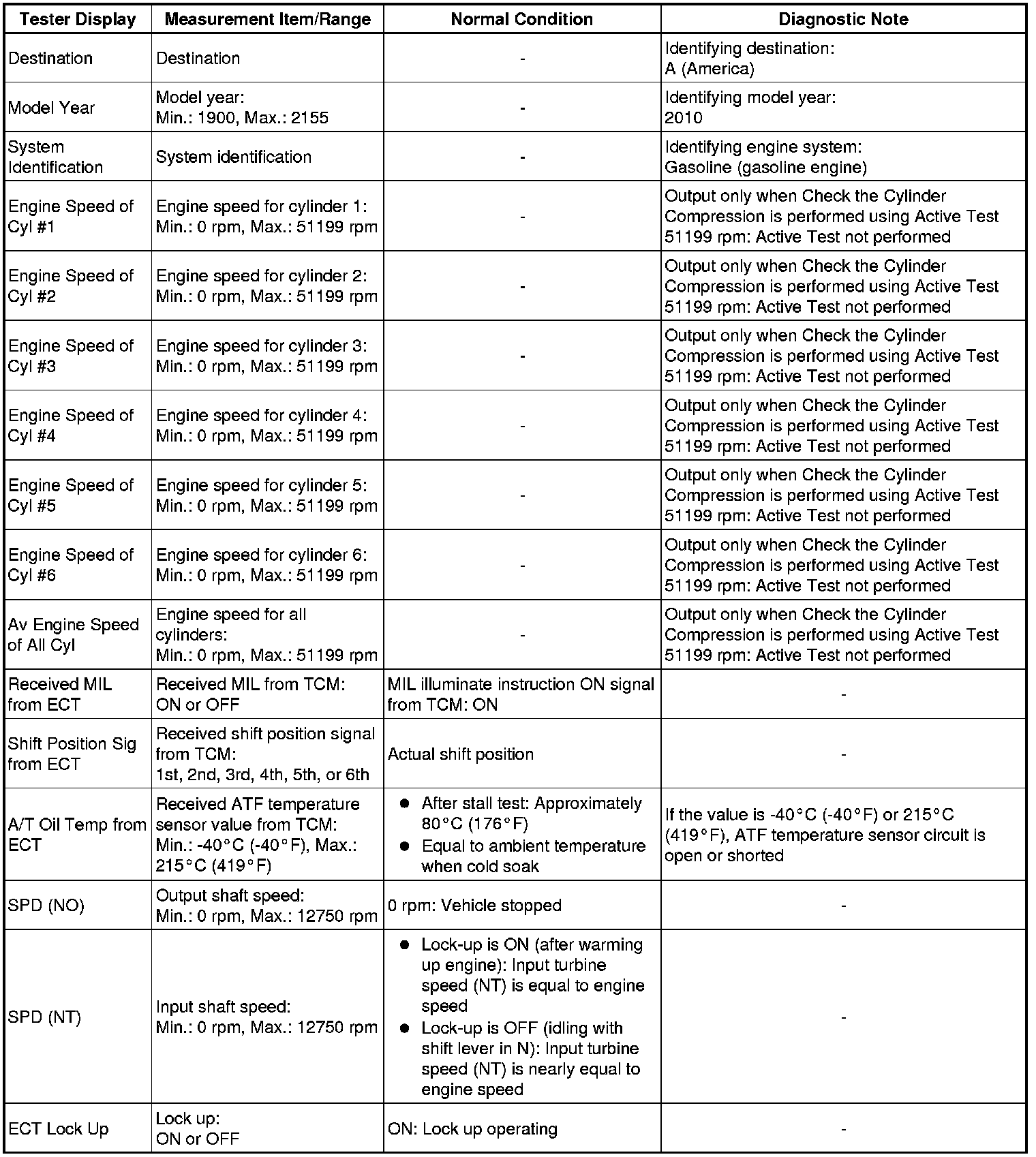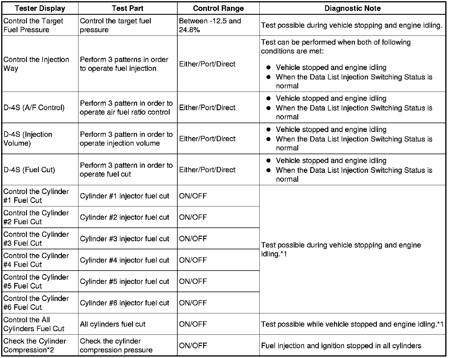 *2: While the Active Test item Check the Cylinder Compression is being performed, the fuel and ignition of all cylinders is cut. At this time, the ECM measures the speed of each cylinder while the engine is being cranked.