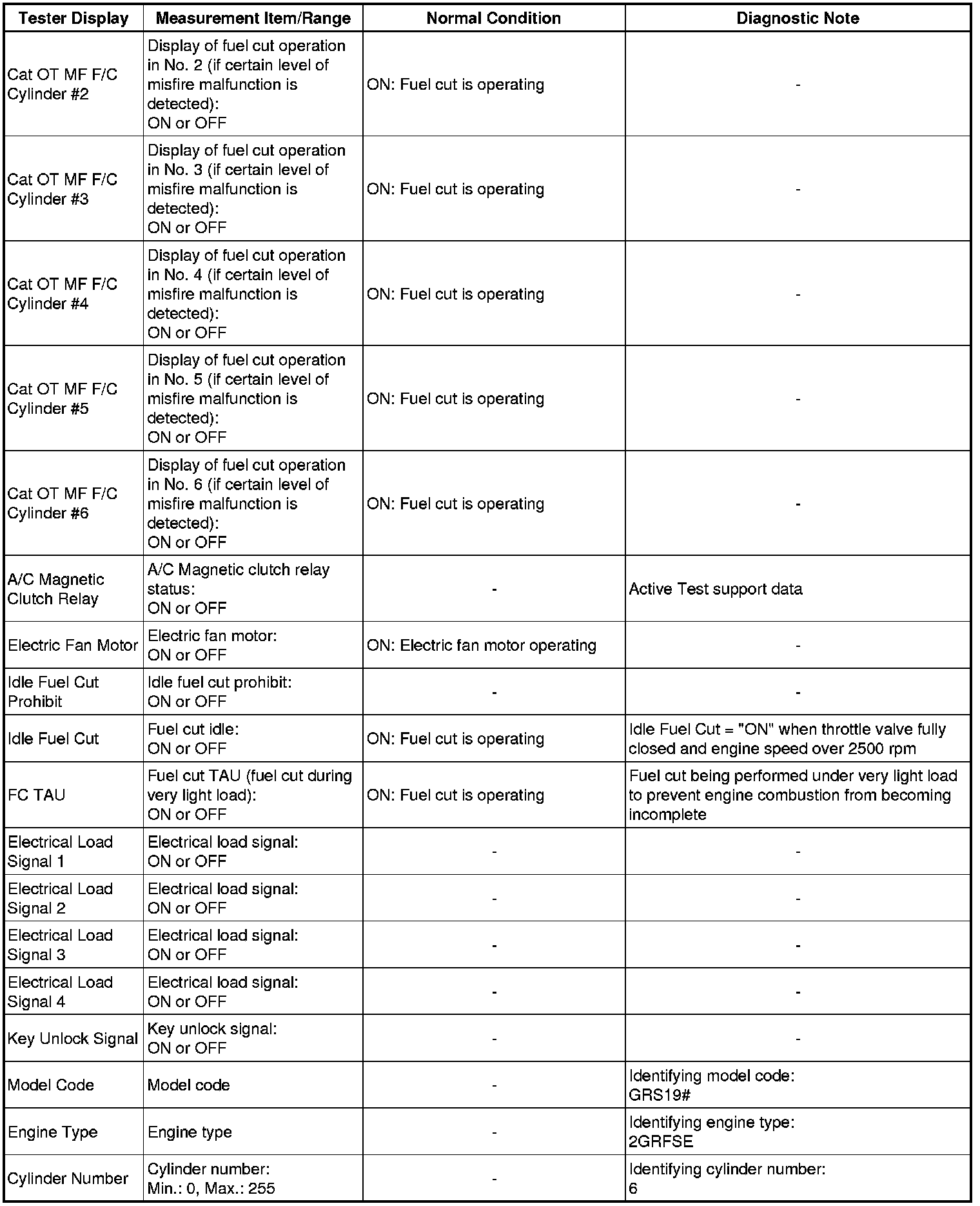 2GR-FSE ENGINE CONTROL SYSTEM: SFI SYSTEM: DATA LIST / ACTIVE TEST