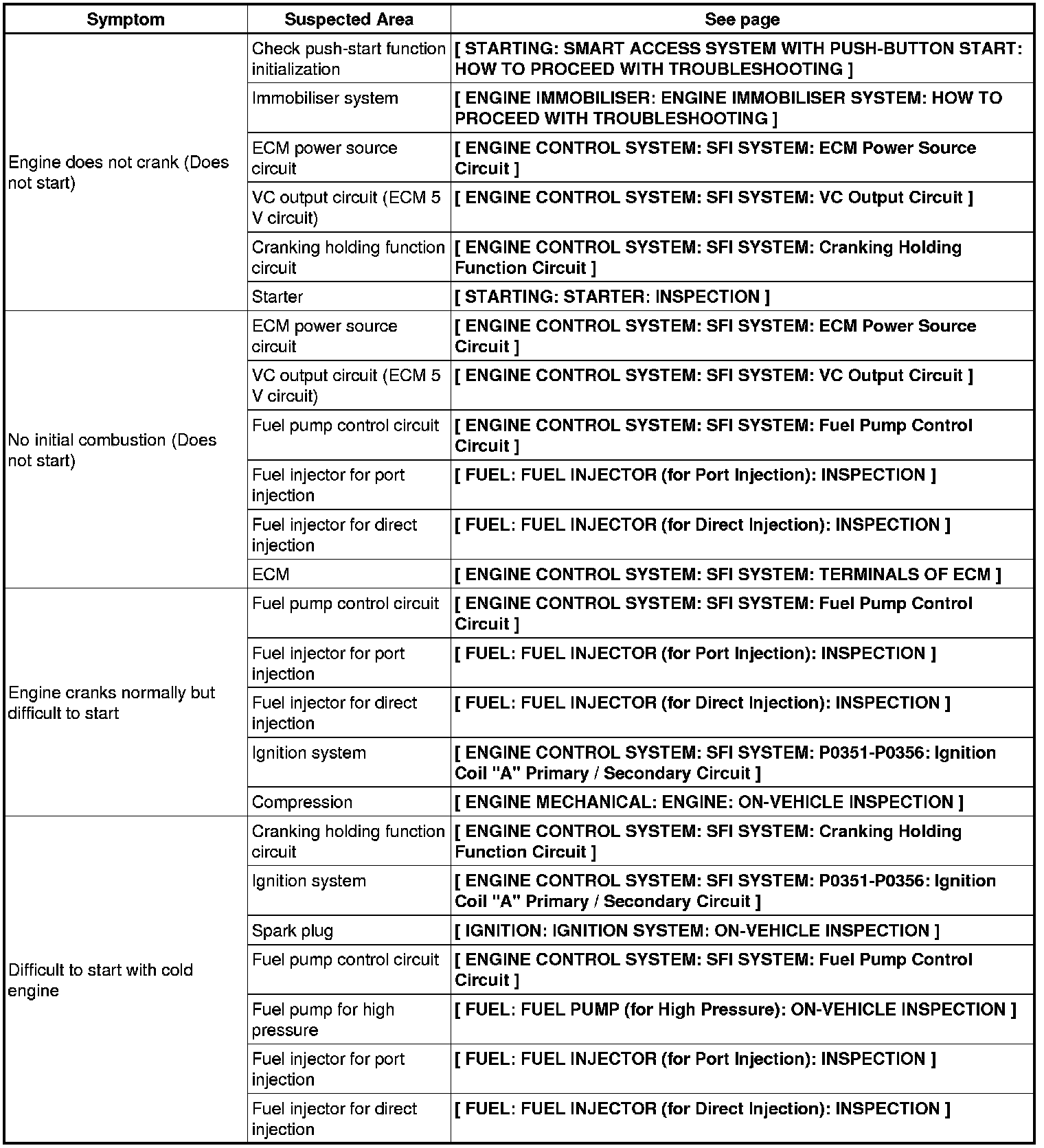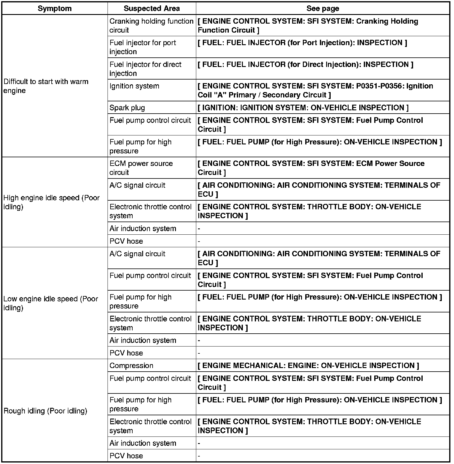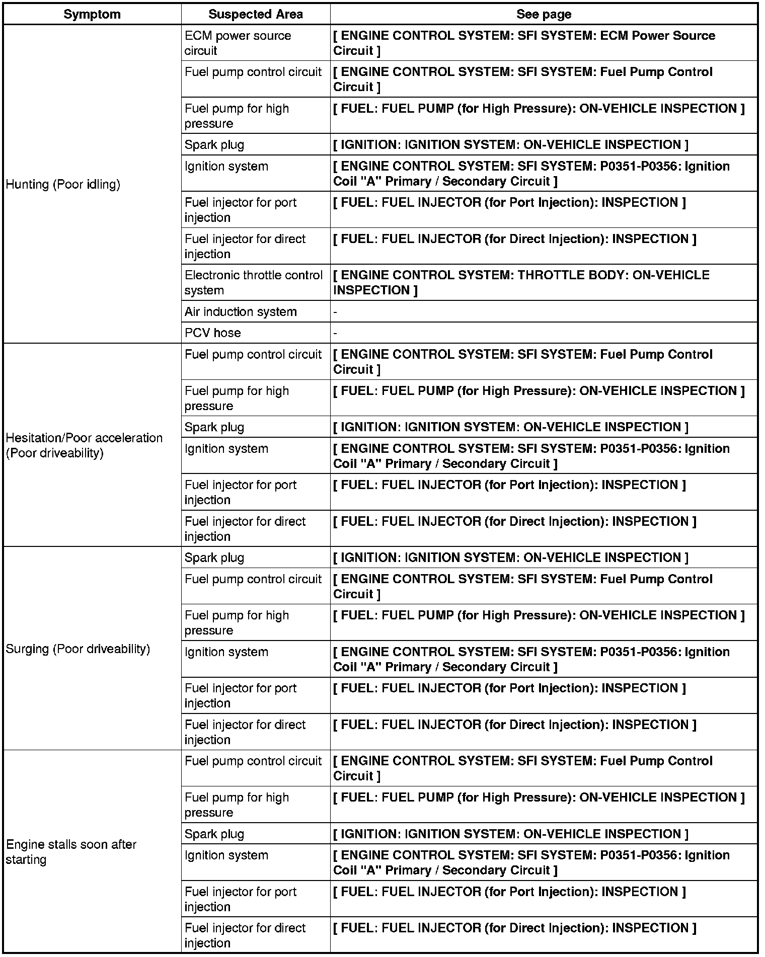 2GR-FSE ENGINE CONTROL SYSTEM: SFI SYSTEM: PROBLEM SYMPTOMS TABLE