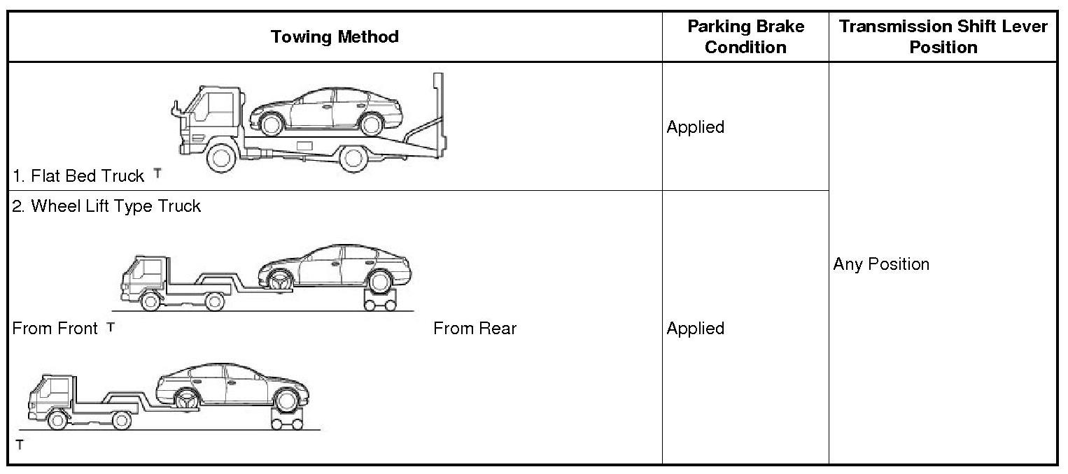 * If the vehicle has trouble in the chassis and drive train, use method 1 (flat bed truck).