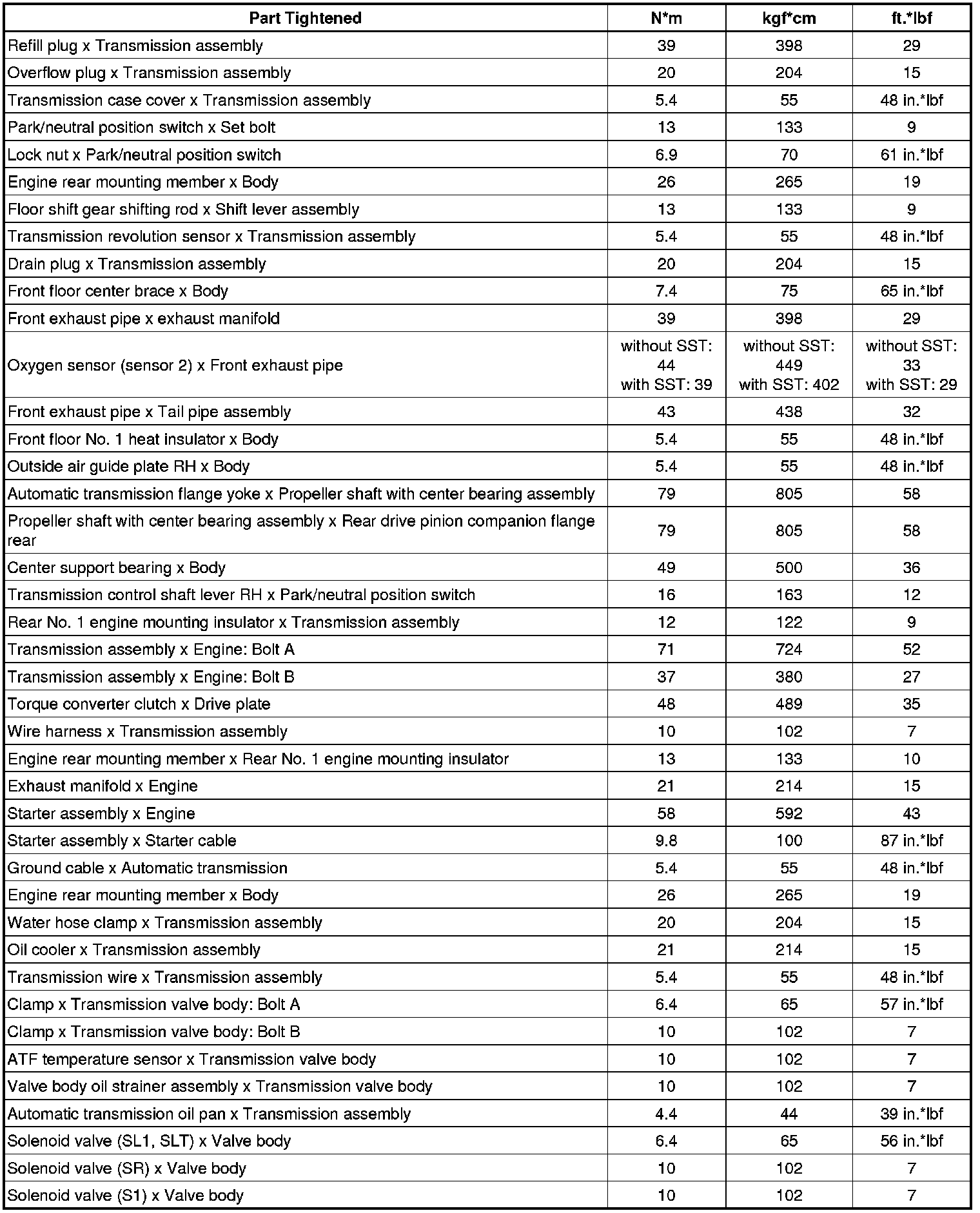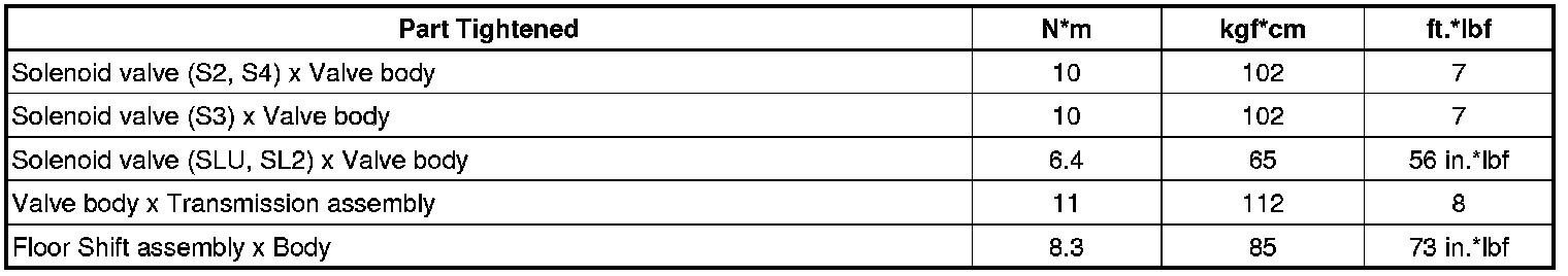 SERVICE SPECIFICATIONS: A760E AUTOMATIC TRANSMISSION: TORQUE SPECIFICATIONS