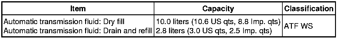 * All shift point values indicated in the above table are actual values. Therefore, if checking a shift point with a chassis dynamometer, keep in mind that there is a range of error in the chassis dynamometer indication.