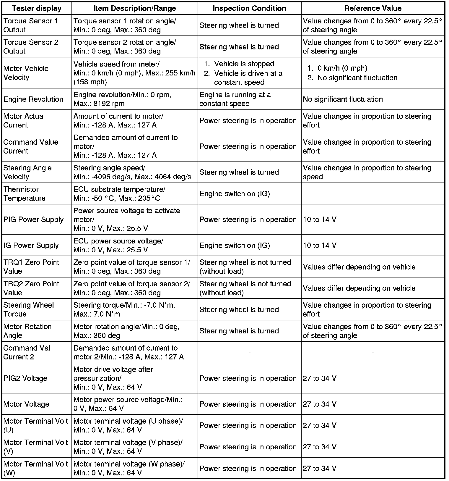 POWER STEERING: POWER STEERING SYSTEM: FREEZE FRAME DATA