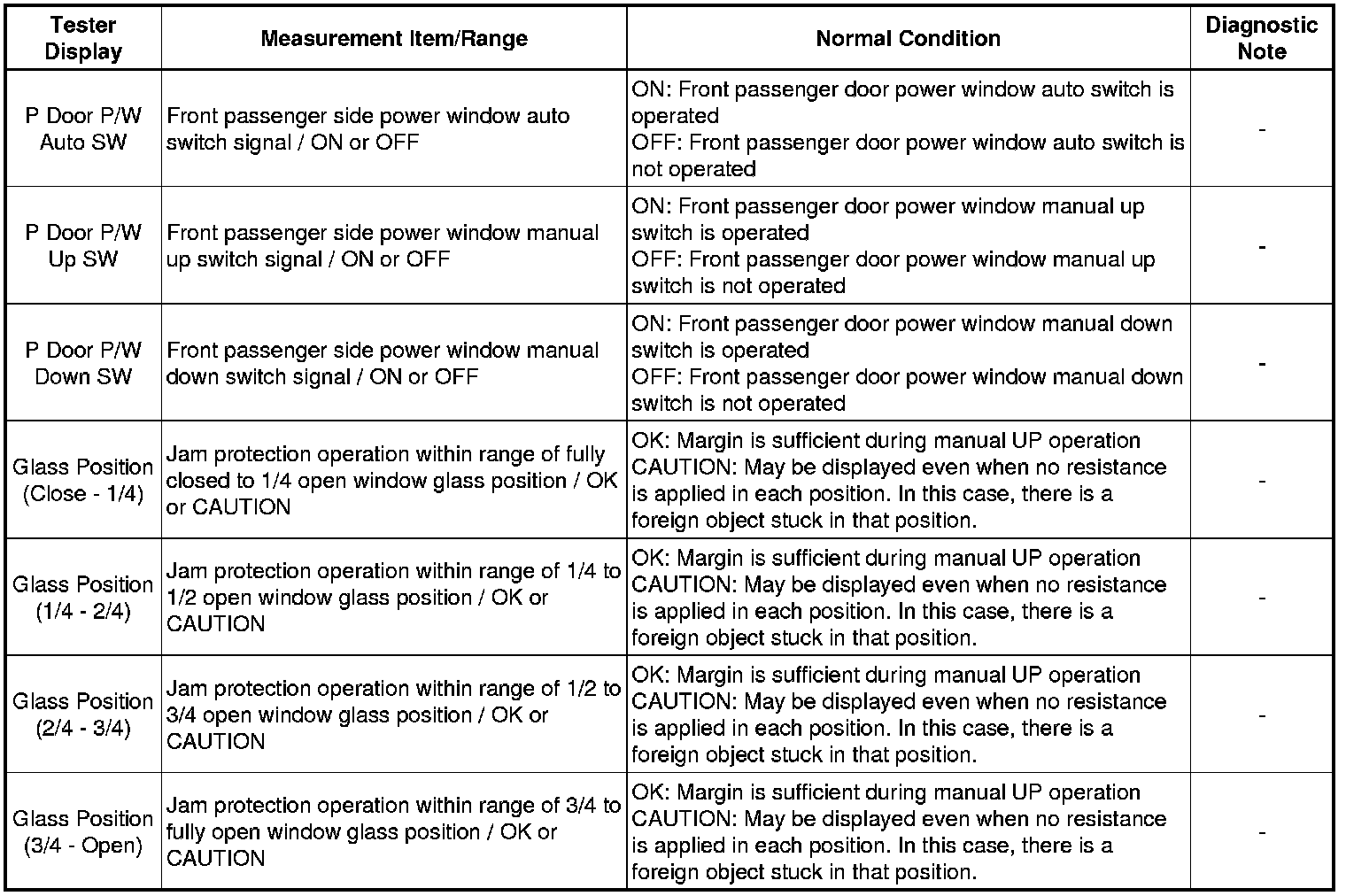 WINDSHIELD / WINDOW GLASS: POWER WINDOW CONTROL SYSTEM: DATA LIST / ACTIVE TEST