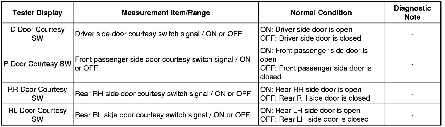 (3) Select the following menu items: Body / D-Door Motor / Data List.
