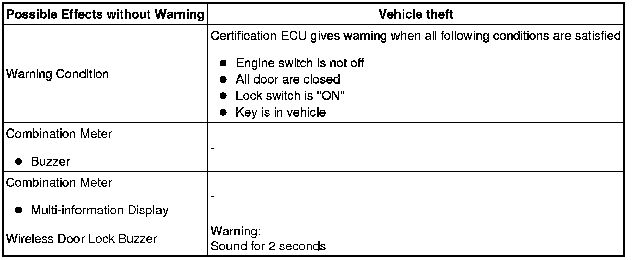 (d) If the key is located inside of the cabin, the door lock function will not operate and the alarm buzzer (beep sound) will sound for 2 seconds.