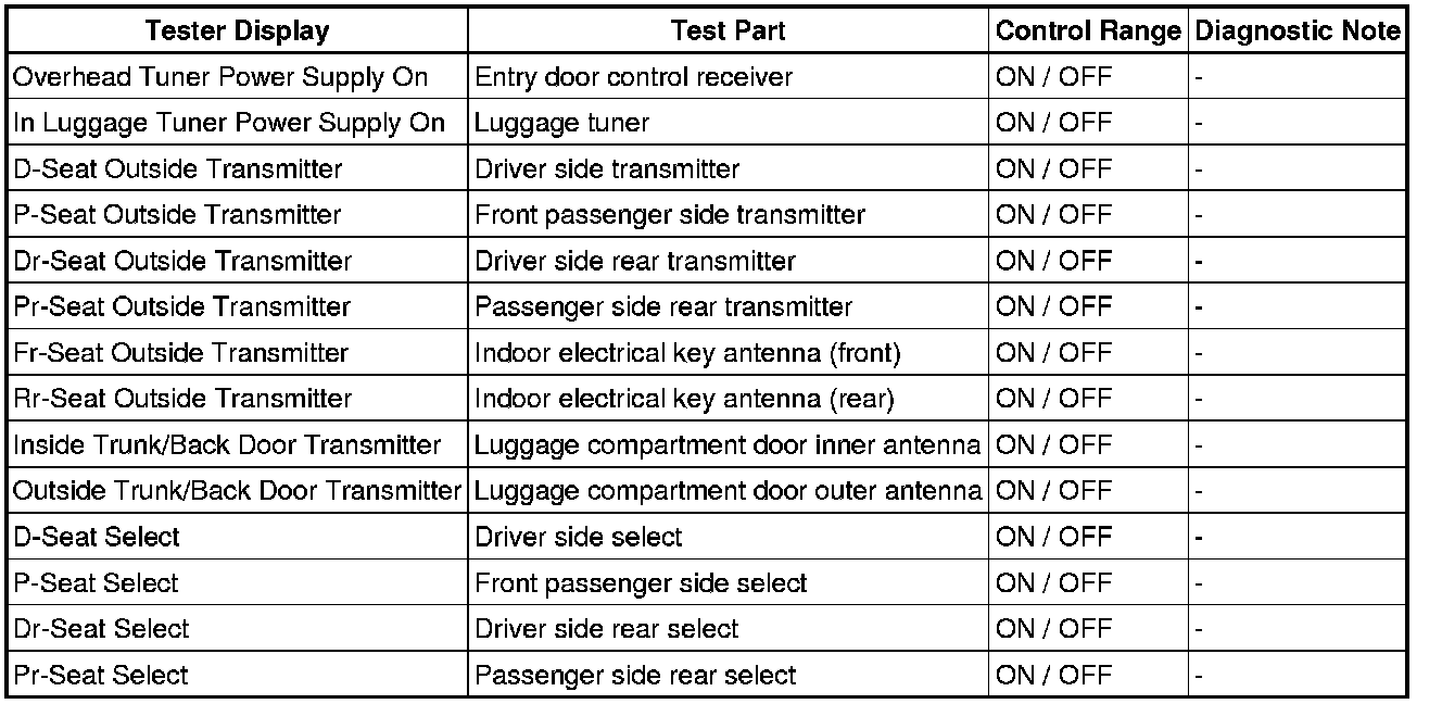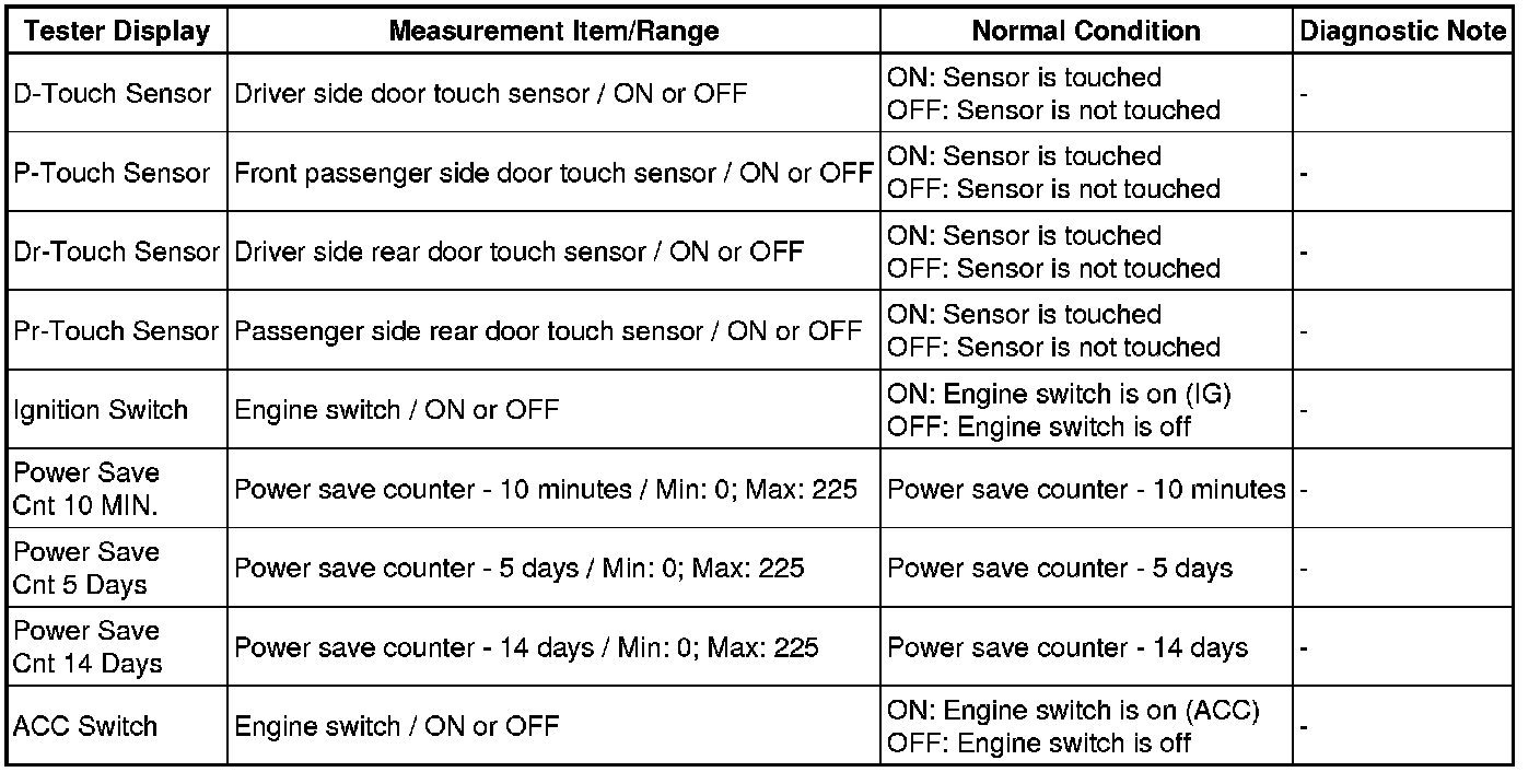 DOOR LOCK: SMART ACCESS SYSTEM WITH PUSH-BUTTON START: DATA LIST / ACTIVE TEST