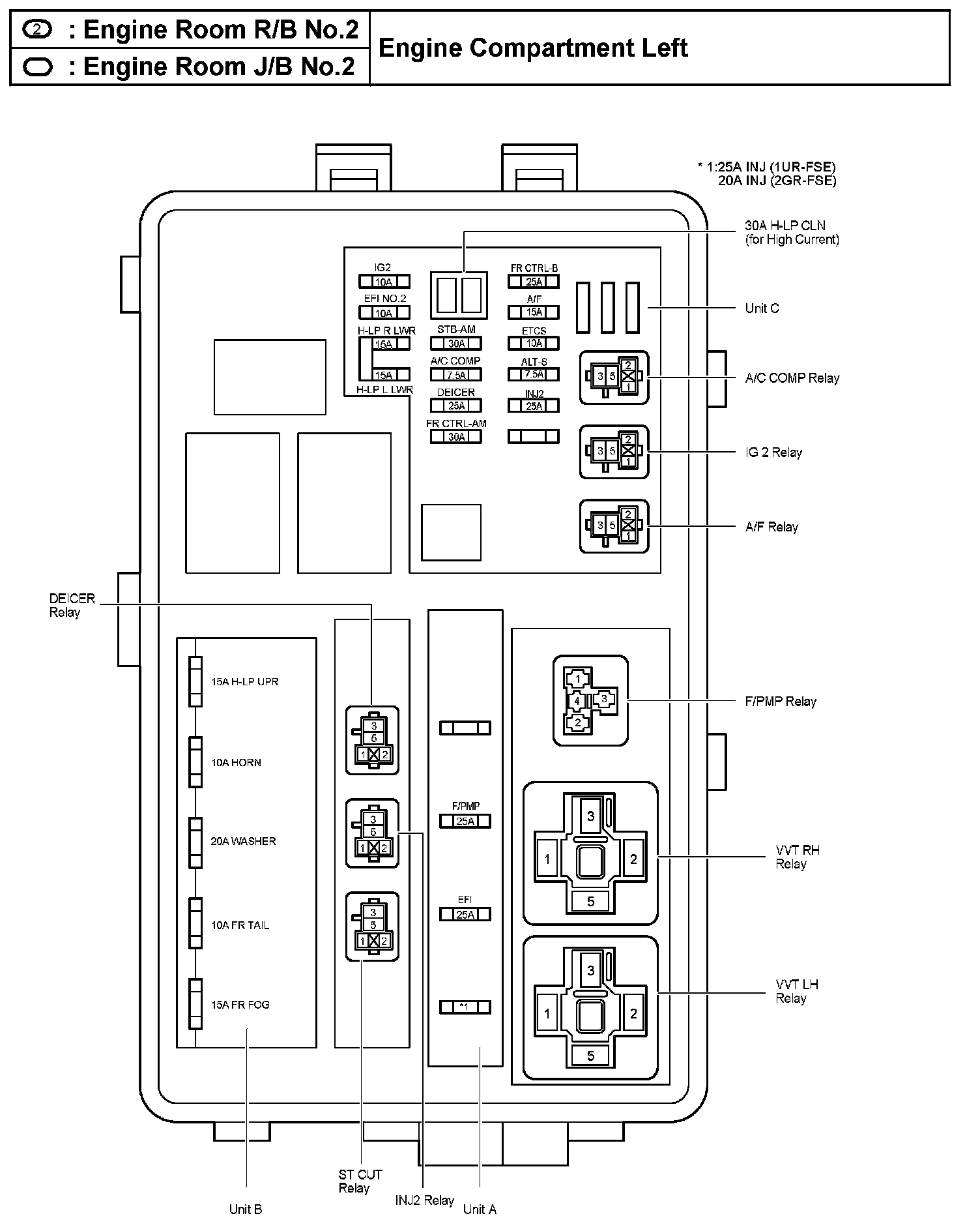 Engine Room R/B No.2, J/B No.2 - Engine Compartment Left: