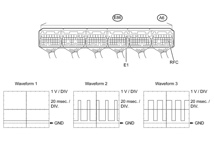 (4) Using the Techstream, check the waveform between terminals A6-19 (RFC) and E86-1 (E1) of the ECM.