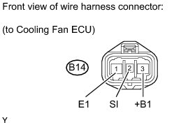 (2) Connect the battery to the cooling fan ECU at terminals 3 (+B1) and 1 (E1).