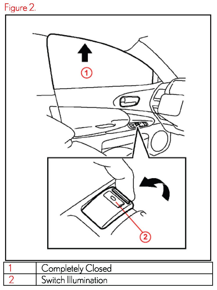 3. Pull "UP" the driver's door power window switch until the window closes. Continue holding the switch until the switch stops blinking and remains illuminated.